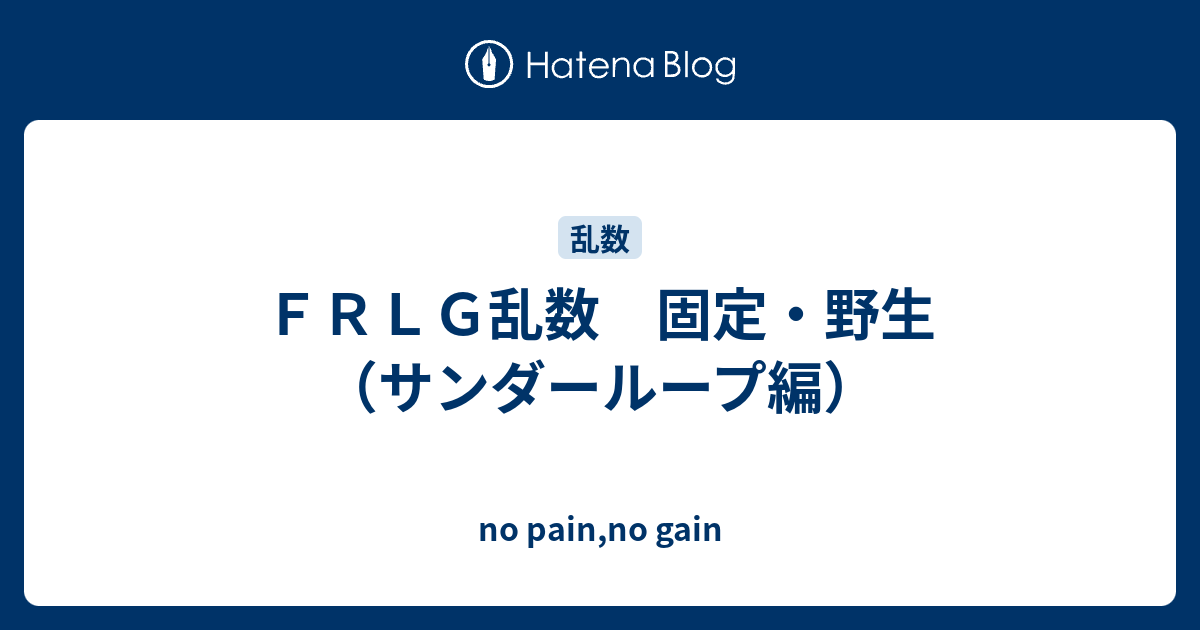 frlg乱数 固定 野生 サンダーループ編 No Pain No Gain